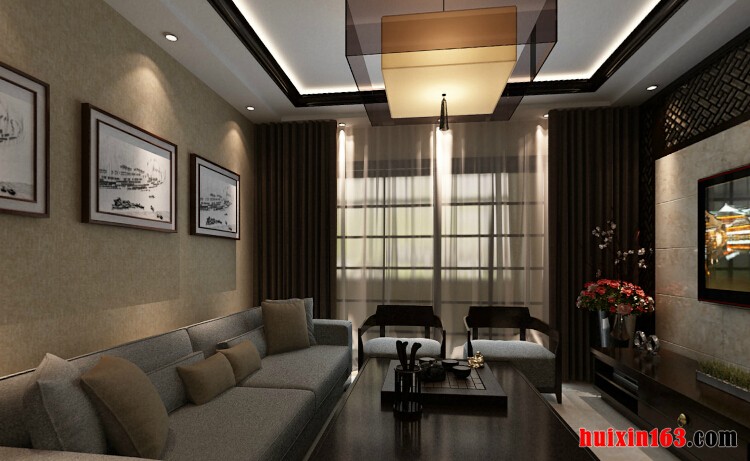 碧海明珠—110平米—三居室—新中式装修效果图—客厅