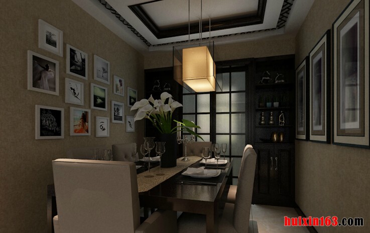 碧海明珠—110平米—三居室—新中式装修效果图—餐厅