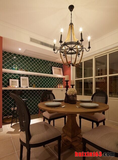 在客厅的设计当中,采用平顶式的石膏板吊顶,背景色彩以白色为主,搭配上一盏个性独特的铁艺吊灯,让空间环境显得更加的时尚雅致,吊顶背景色彩以白色为主,与整个空间的色彩呈鲜明的反差,但将空间营造得比较亮丽、唯美,沙发背景墙采用的是实木为背景材料,搭配上一个古老经典的时钟,将客厅的氛围展现得比较惬意舒适,一棵绿植的添加摆放,通过富有跳跃性的绿意来点缀环境,让空间彰显出一种活跃的氛围,让其色彩也不显得单调范围,开放式的餐厅设计,在视觉感观上让空间显得比较宽敞,简单的造型设计其实也不失时尚与浪漫。