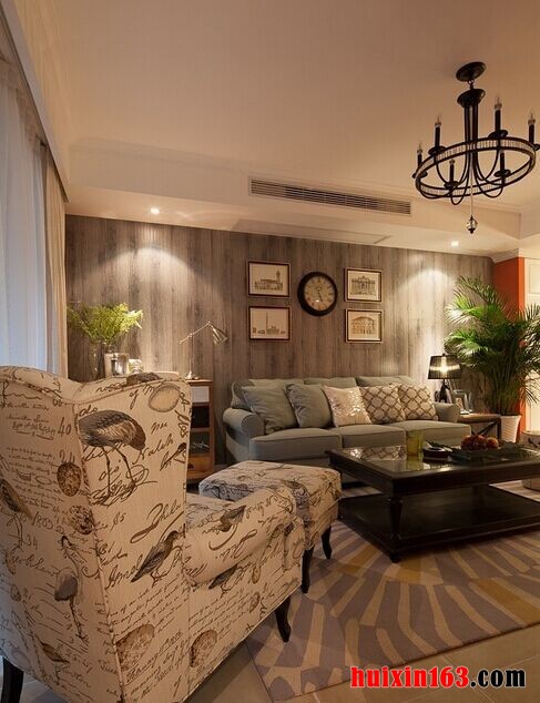 在客厅的设计当中,采用平顶式的石膏板吊顶,背景色彩以白色为主,搭配上一盏个性独特的铁艺吊灯,让空间环境显得更加的时尚雅致,吊顶背景色彩以白色为主,与整个空间的色彩呈鲜明的反差,但将空间营造得比较亮丽、唯美,沙发背景墙采用的是实木为背景材料,搭配上一个古老经典的时钟,将客厅的氛围展现得比较惬意舒适,一棵绿植的添加摆放,通过富有跳跃性的绿意来点缀环境,让空间彰显出一种活跃的氛围,让其色彩也不显得单调范围,开放式的餐厅设计,在视觉感观上让空间显得比较宽敞,简单的造型设计其实也不失时尚与浪漫。